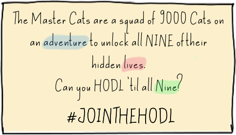 For Master Cats, the HODL is our unwavering pursuit to unlocking all Nine Lives of art to obtain the power of diamond hands.